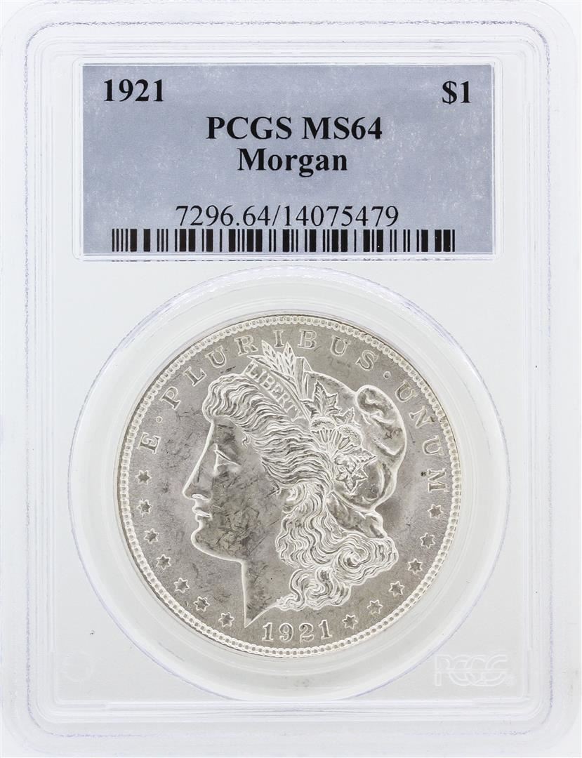 One 1921 PCGS MS64 Morgan Silver Dollar. PCGS Certified.
