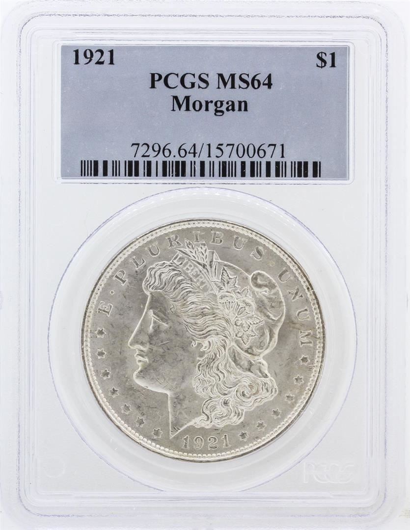One 1921 PCGS MS64 Morgan Silver Dollar. PCGS Certified.
