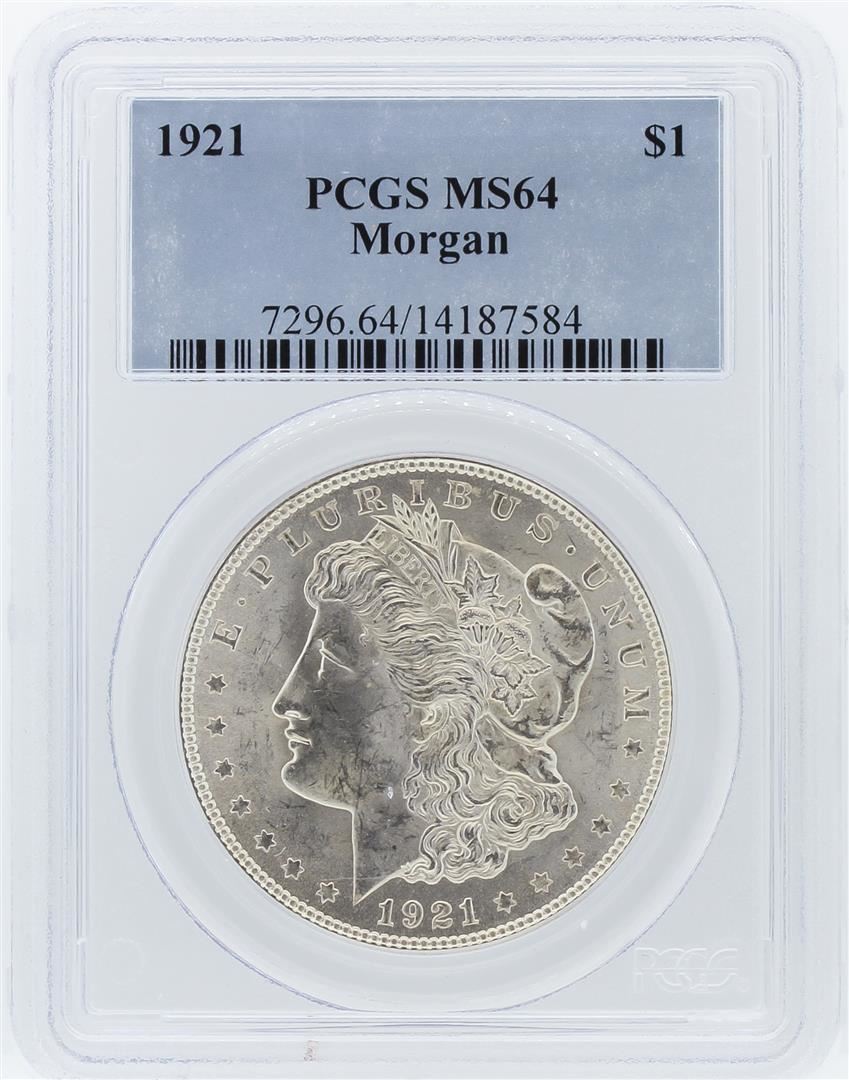 One 1921 PCGS MS64 Morgan Silver Dollar. PCGS Certified.