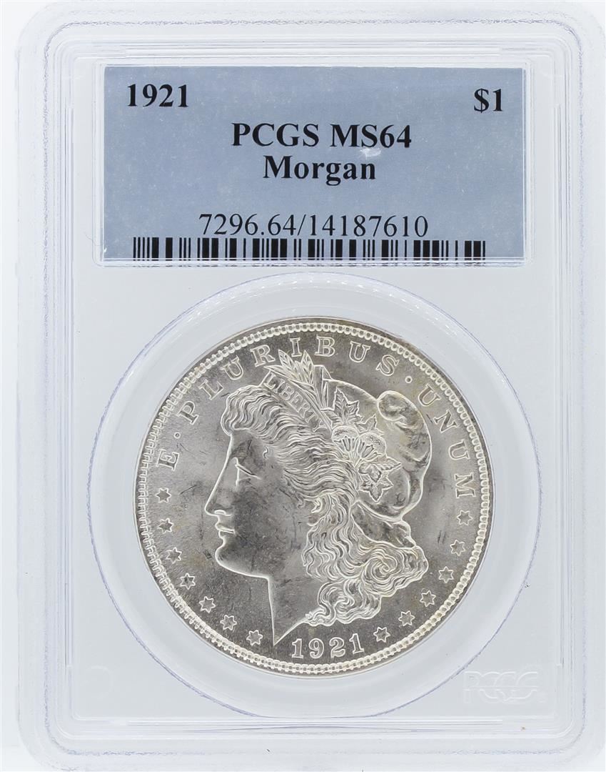 One 1921 PCGS MS64 Morgan Silver Dollar. PCGS Certified.