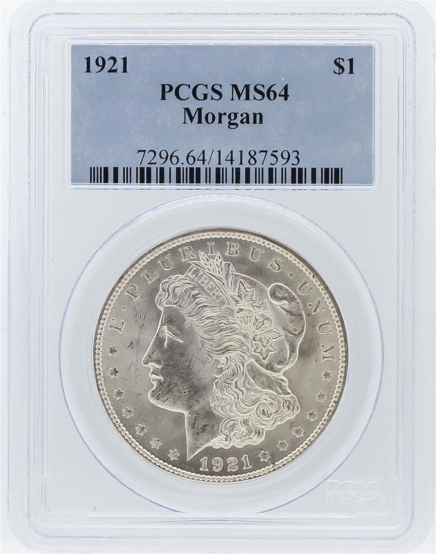One 1921 PCGS MS64 Morgan Silver Dollar. PCGS Certified.