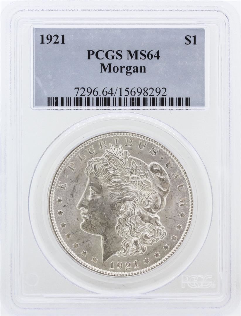 One 1921 PCGS MS64 Morgan Silver Dollar. PCGS Certified.