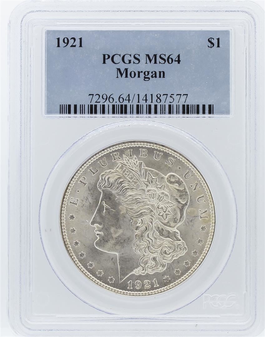 One 1921 PCGS MS64 Morgan Silver Dollar. PCGS Certified.