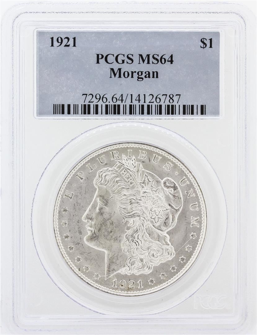 One 1921 PCGS MS64 Morgan Silver Dollar. PCGS Certified.