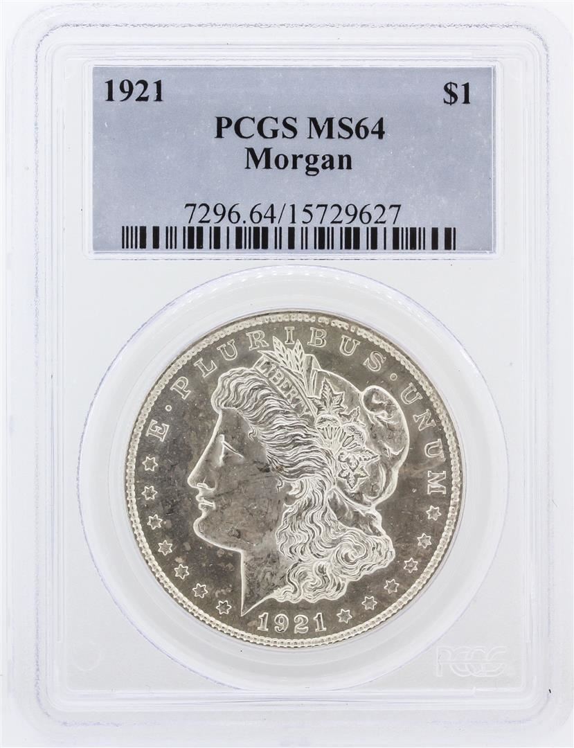 One 1921 PCGS MS64 Morgan Silver Dollar. PCGS Certified.