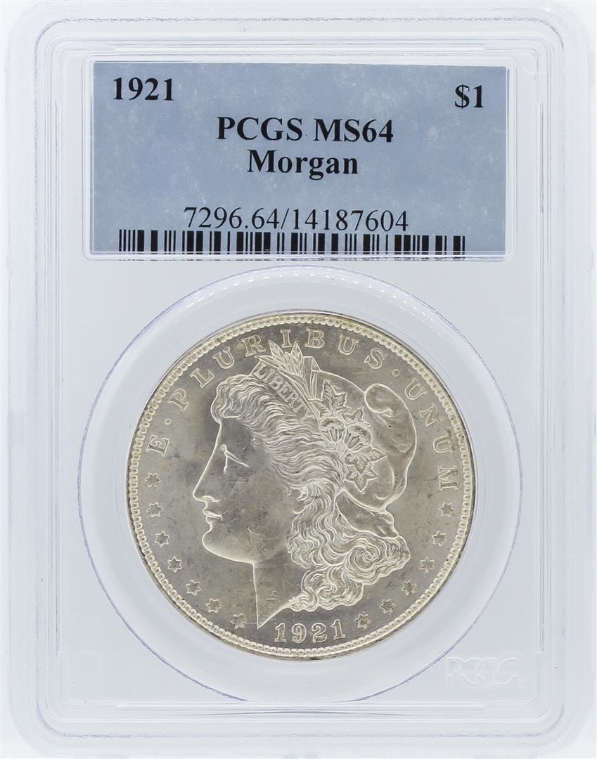 One 1921 PCGS MS64 Morgan Silver Dollar. PCGS Certified.