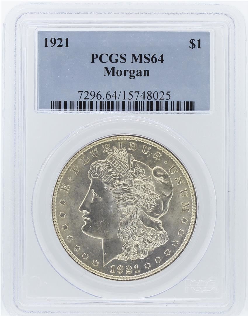 One 1921 PCGS MS64 Morgan Silver Dollar. PCGS Certified.