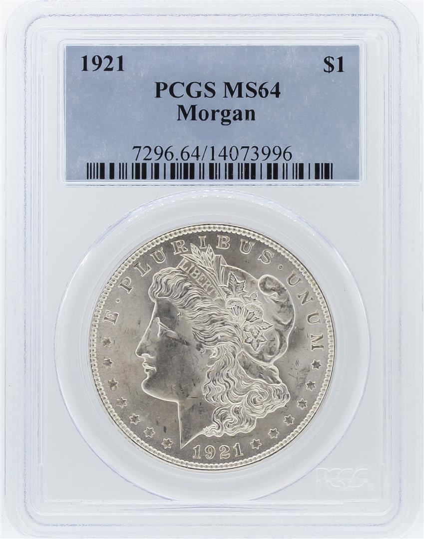 One 1921 PCGS MS64 Morgan Silver Dollar. PCGS Certified.