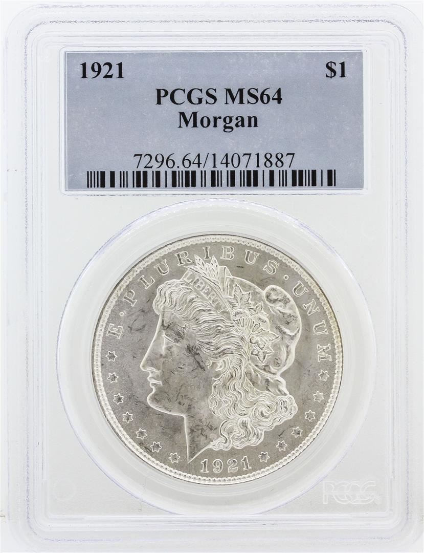 One 1921 PCGS MS64 Morgan Silver Dollar. PCGS Certified.