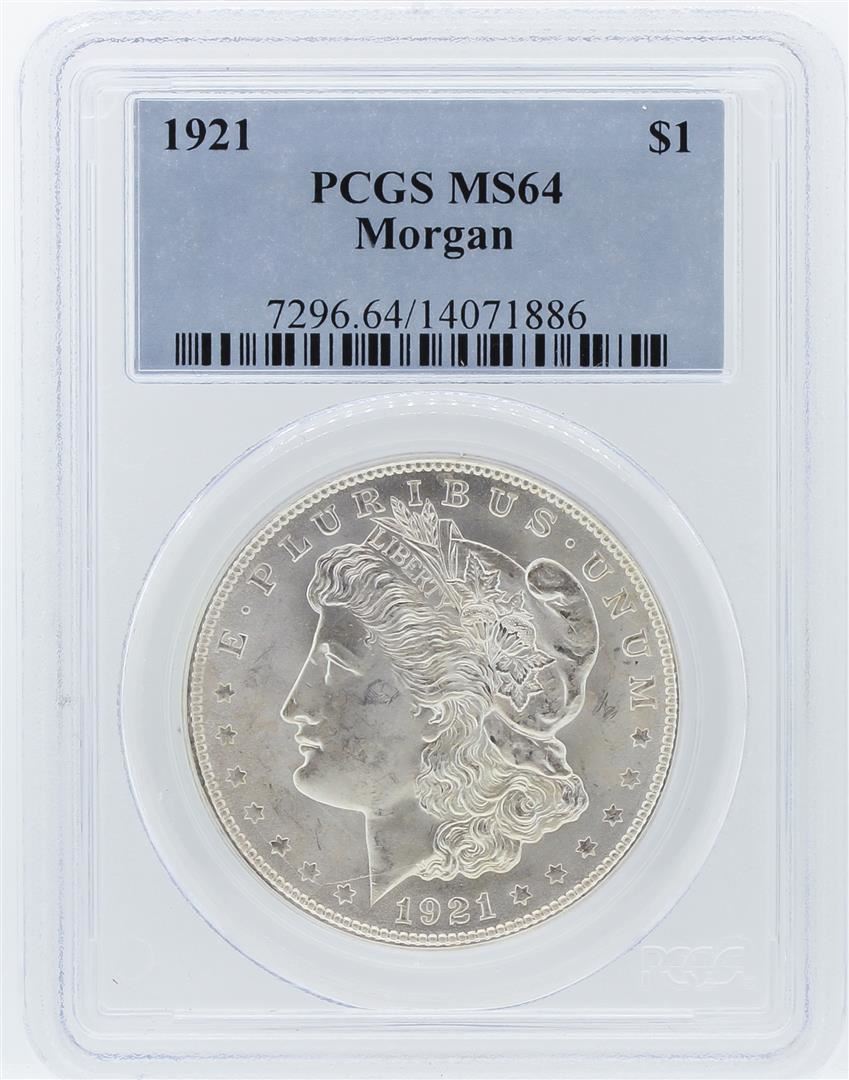 One 1921 PCGS MS64 Morgan Silver Dollar. PCGS Certified.