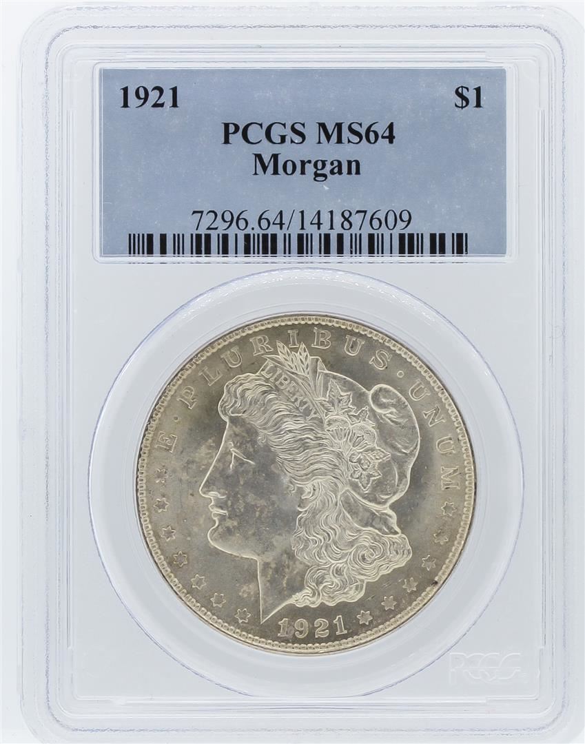 One 1921 PCGS MS64 Morgan Silver Dollar. PCGS Certified.