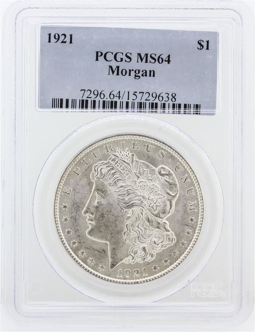 One 1921 PCGS MS64 Morgan Silver Dollar. PCGS Certified.