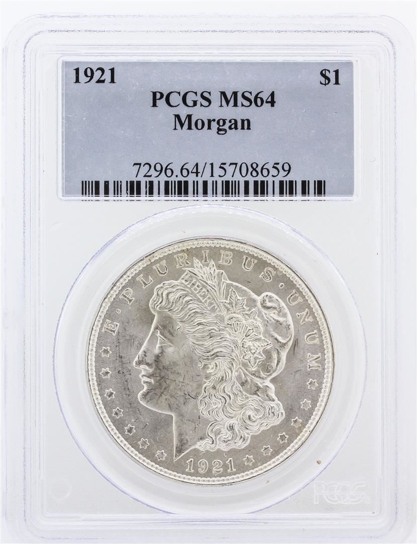 One 1921 PCGS MS64 Morgan Silver Dollar. PCGS Certified.