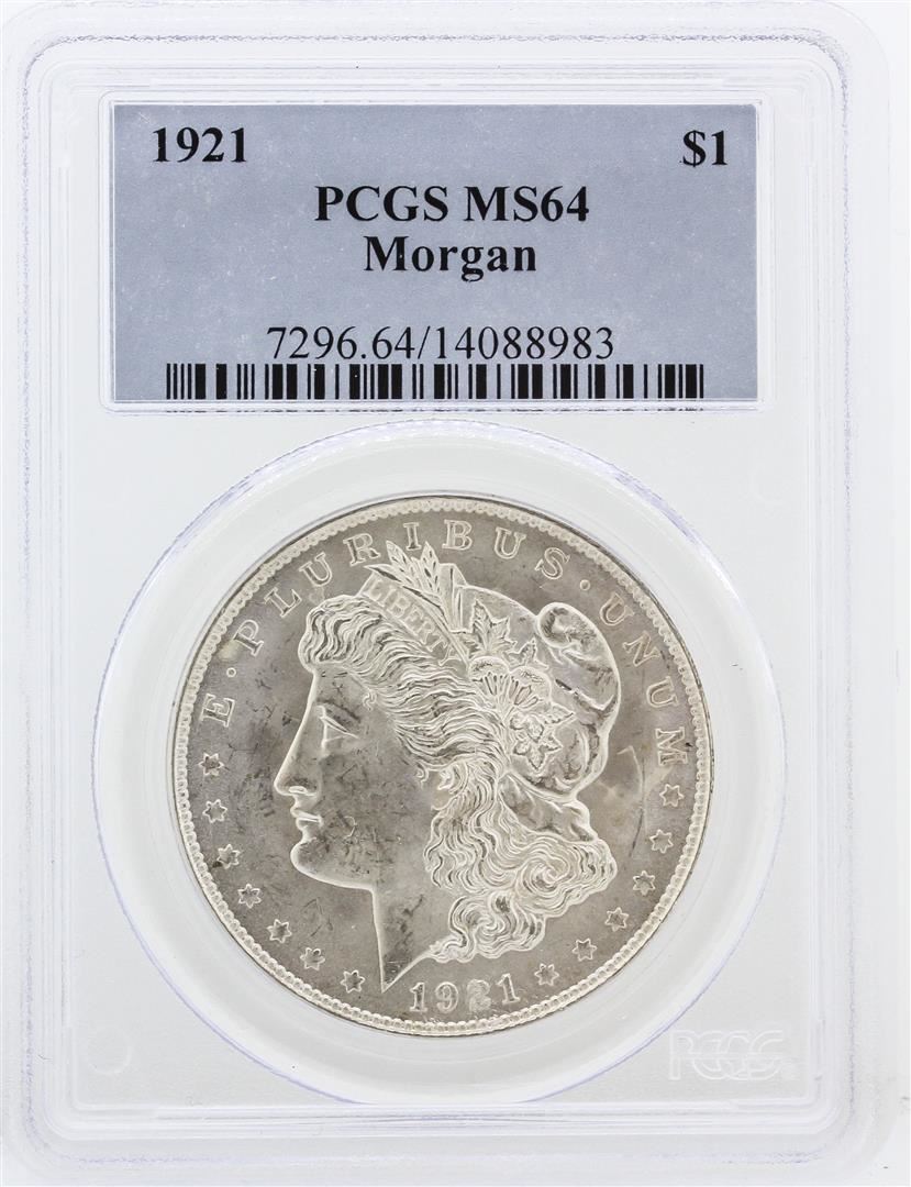 One 1921 PCGS MS64 Morgan Silver Dollar. PCGS Certified.