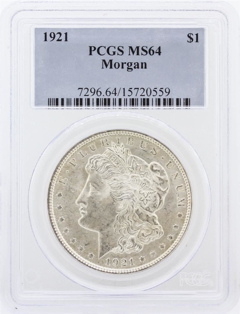 One 1921 PCGS MS64 Morgan Silver Dollar. PCGS Certified.