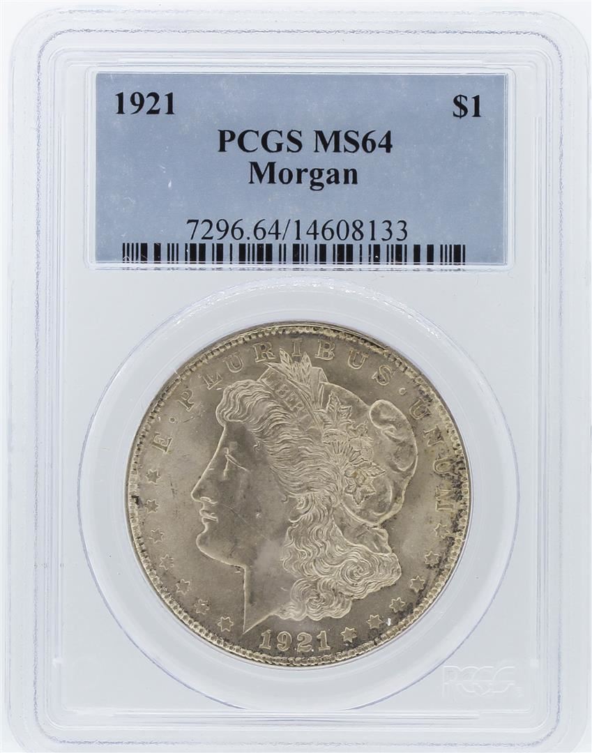 One 1921 PCGS MS64 Morgan Silver Dollar. PCGS Certified.