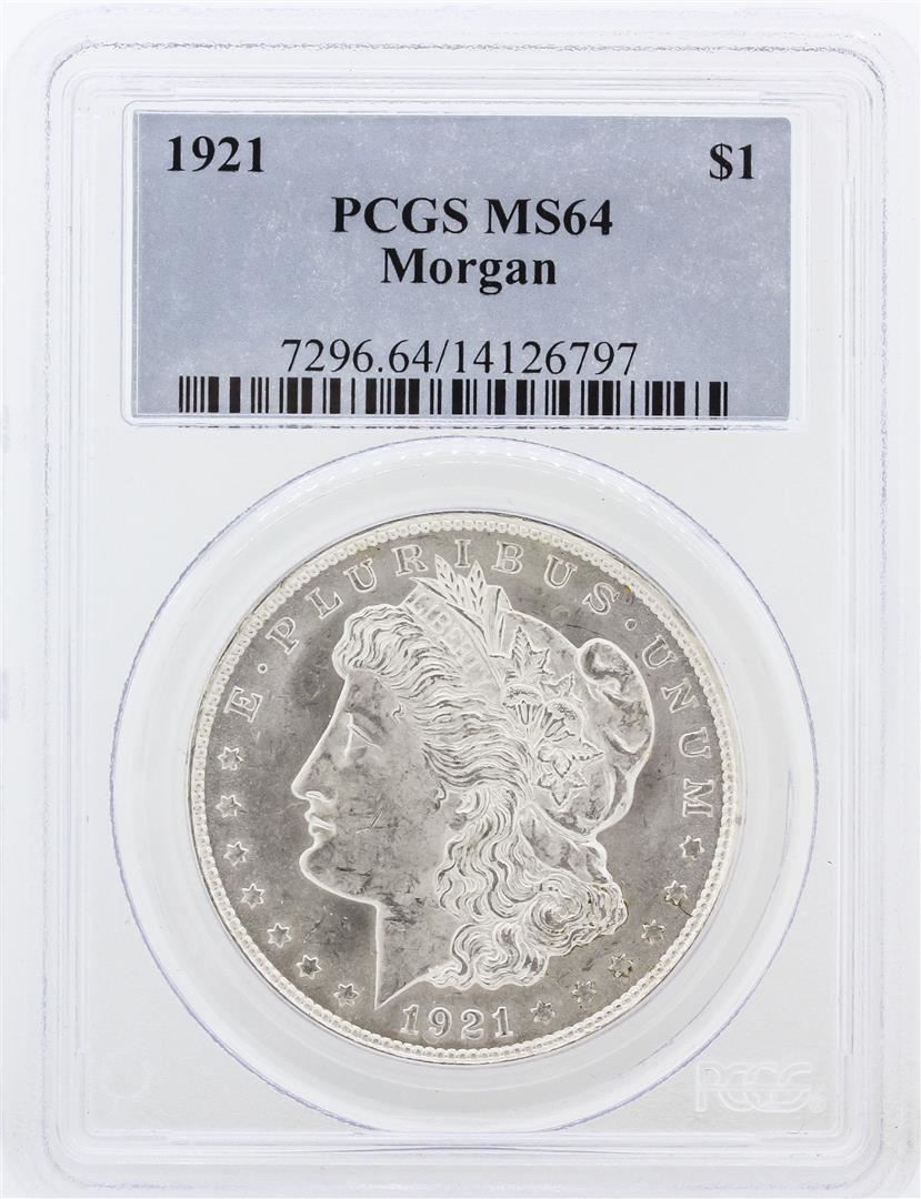One 1921 PCGS MS64 Morgan Silver Dollar. PCGS Certified.