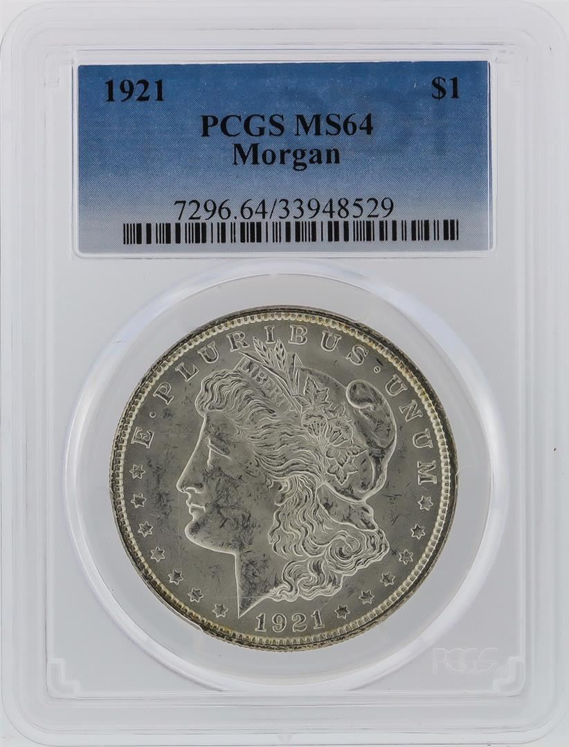 One 1921 PCGS MS64 Morgan Silver Dollar. PCGS Certified.