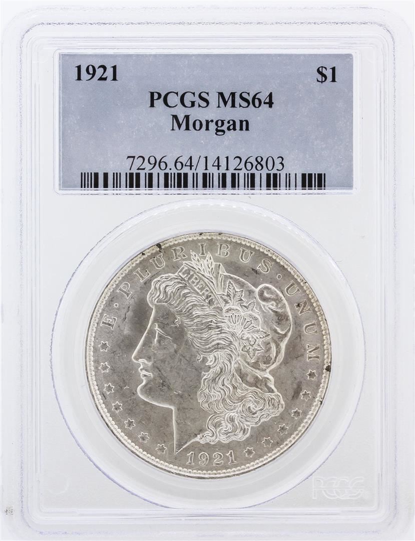 One 1921 PCGS MS64 Morgan Silver Dollar. PCGS Certified.