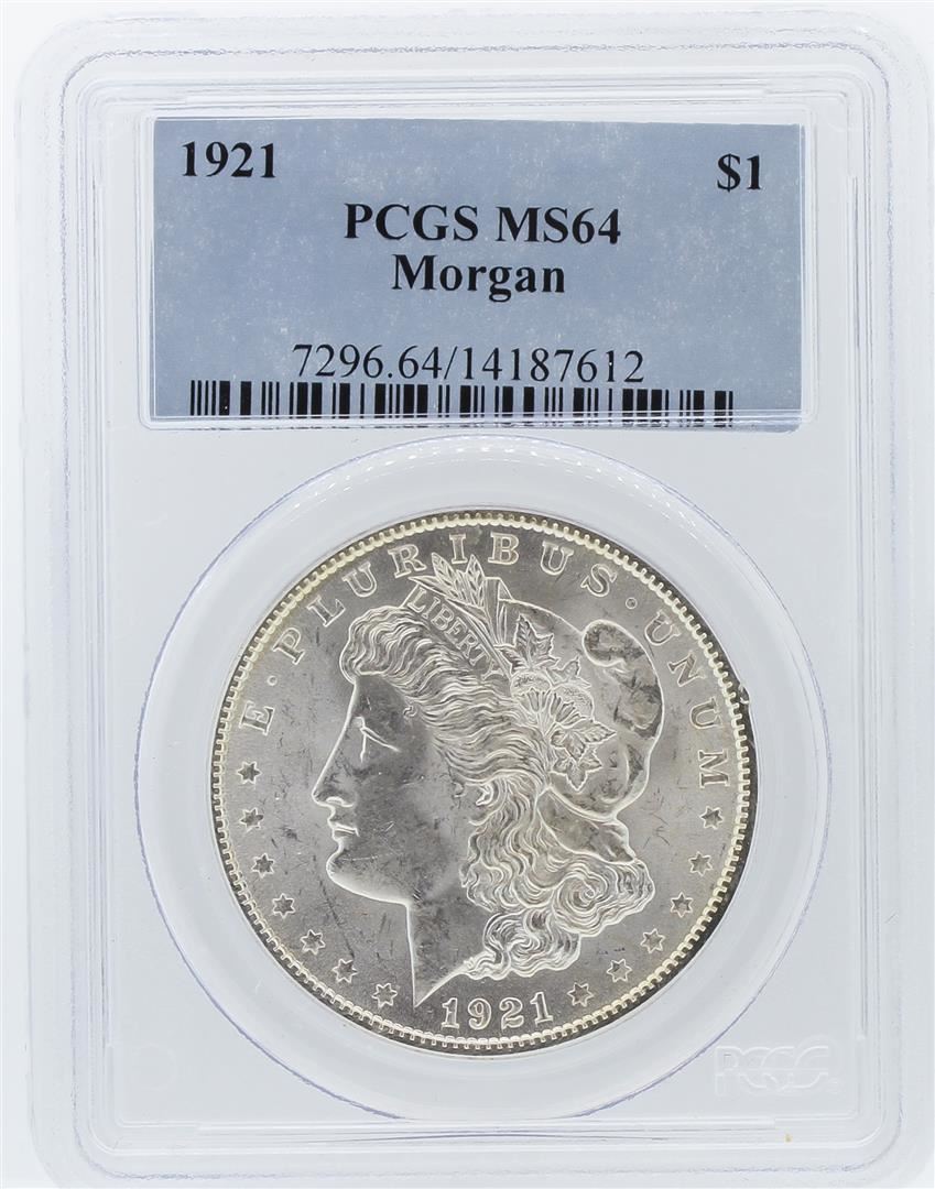 One 1921 PCGS MS64 Morgan Silver Dollar. PCGS Certified.