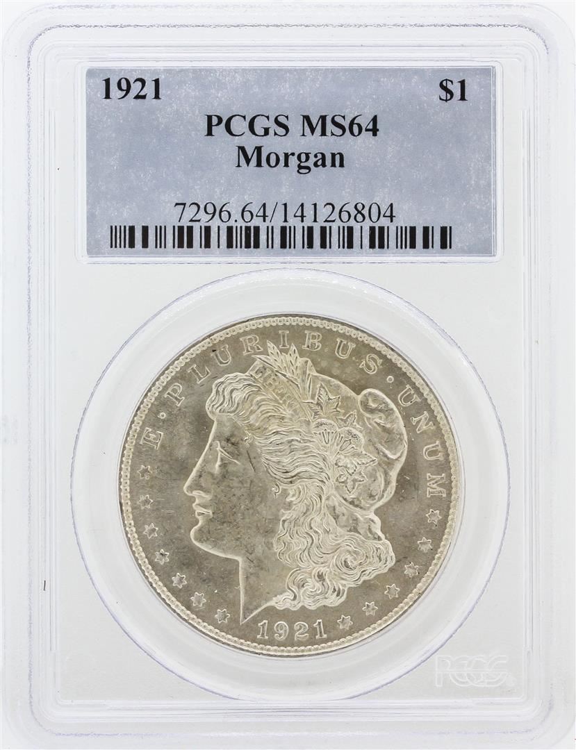 One 1921 PCGS MS64 Morgan Silver Dollar. PCGS Certified.