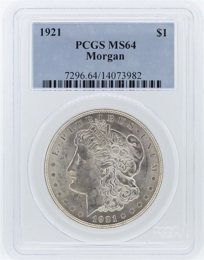 One 1921 PCGS MS64 Morgan Silver Dollar. PCGS Certified.