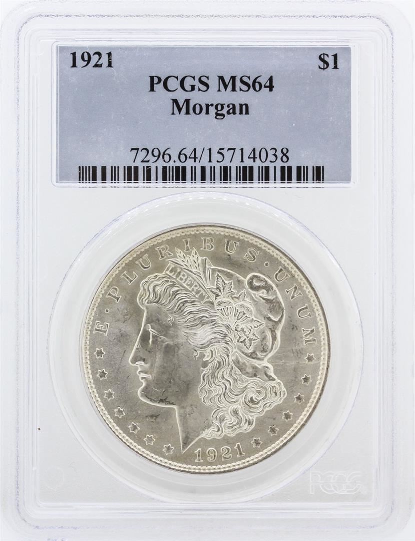 One 1921 PCGS MS64 Morgan Silver Dollar. PCGS Certified.