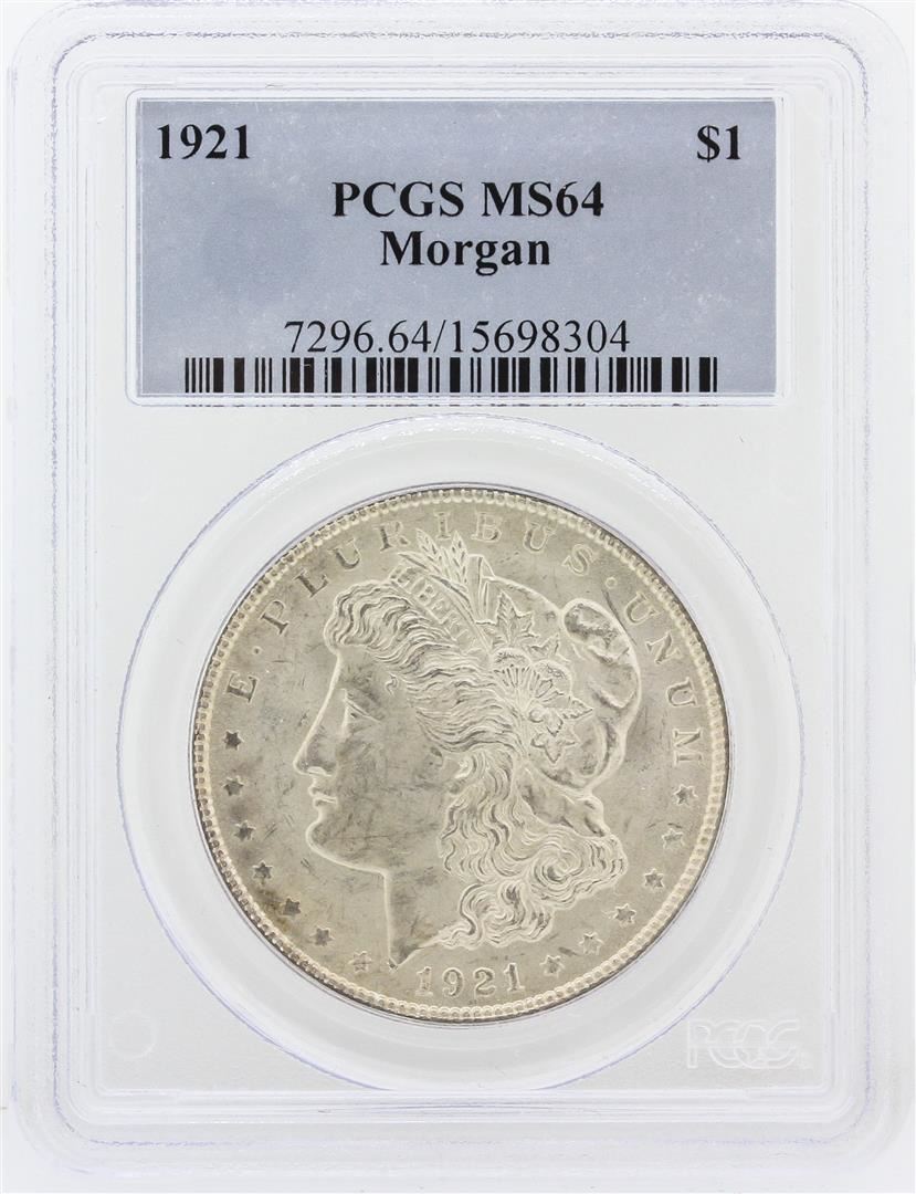 One 1921 PCGS MS64 Morgan Silver Dollar. PCGS Certified.