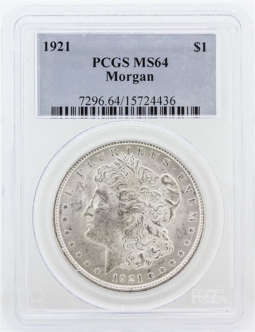 One 1921 PCGS MS64 Morgan Silver Dollar. PCGS Certified.