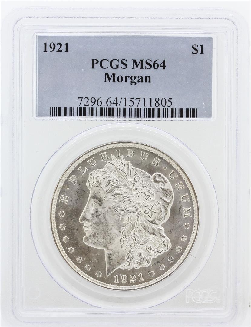 One 1921 PCGS MS64 Morgan Silver Dollar. PCGS Certified.