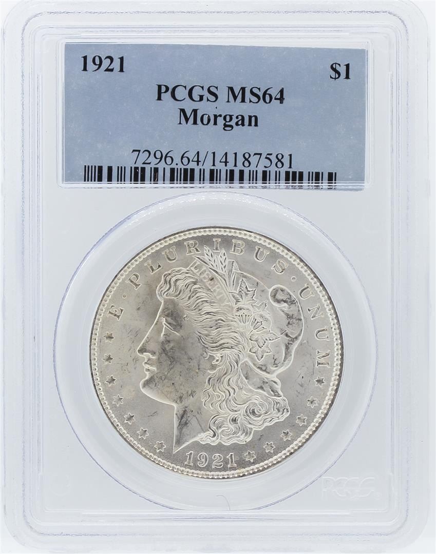 One 1921 PCGS MS64 Morgan Silver Dollar. PCGS Certified.