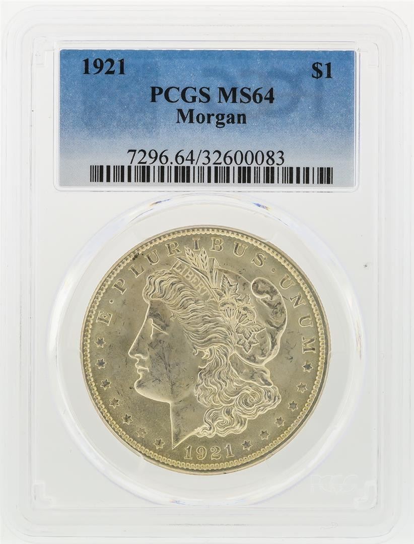 One 1921 PCGS MS64 Morgan Silver Dollar. PCGS Certified.