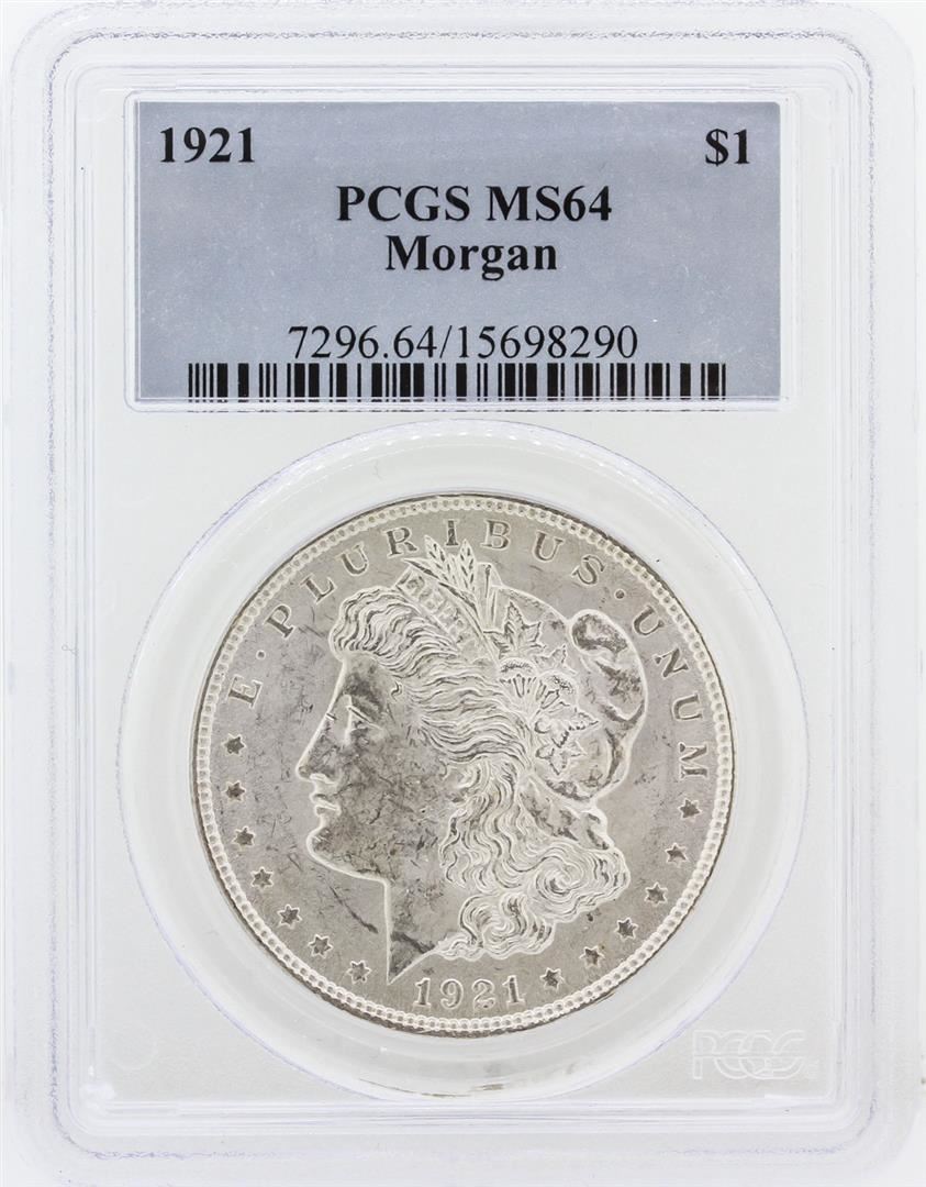 One 1921 PCGS MS64 Morgan Silver Dollar. PCGS Certified.