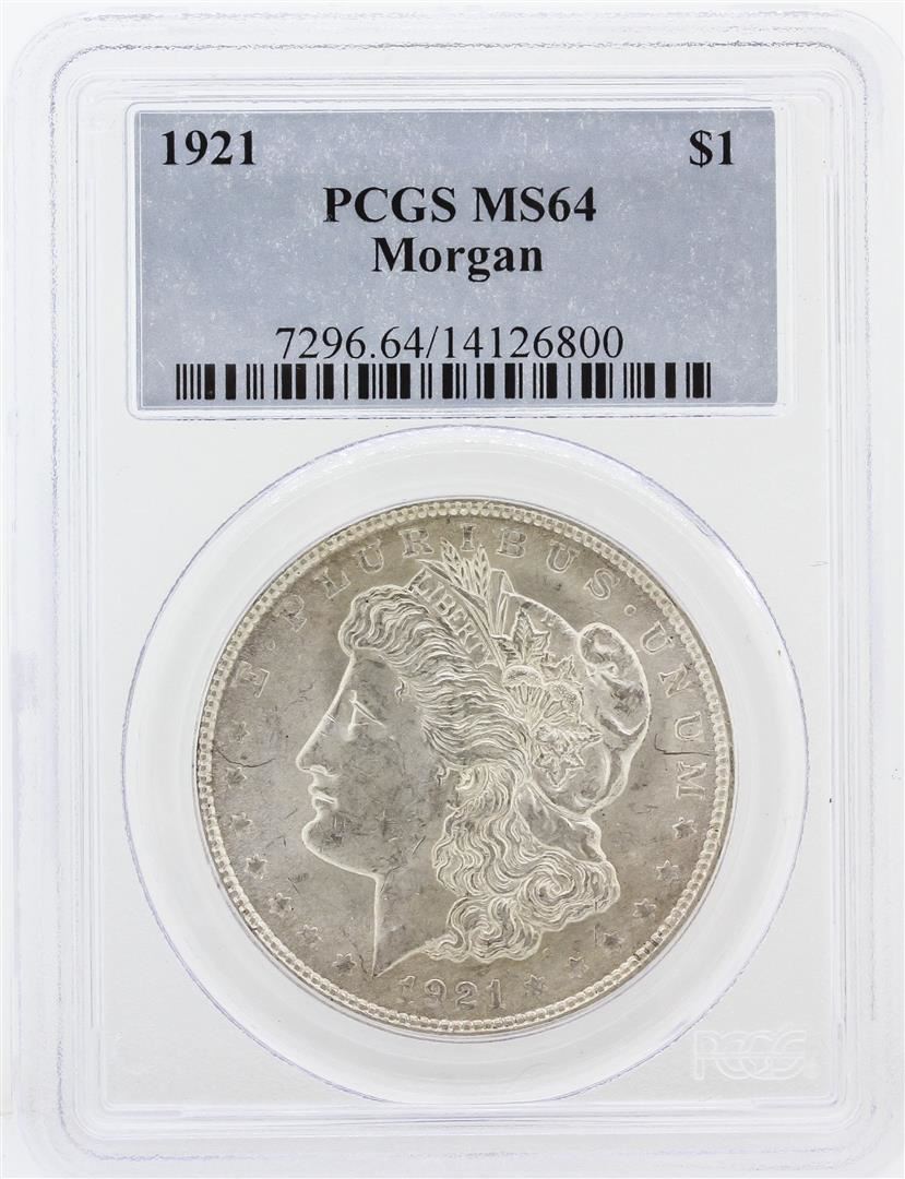 One 1921 PCGS MS64 Morgan Silver Dollar. PCGS Certified.