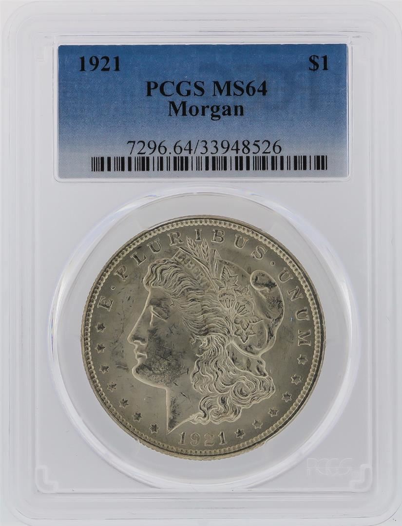 One 1921 PCGS MS64 Morgan Silver Dollar. PCGS Certified.