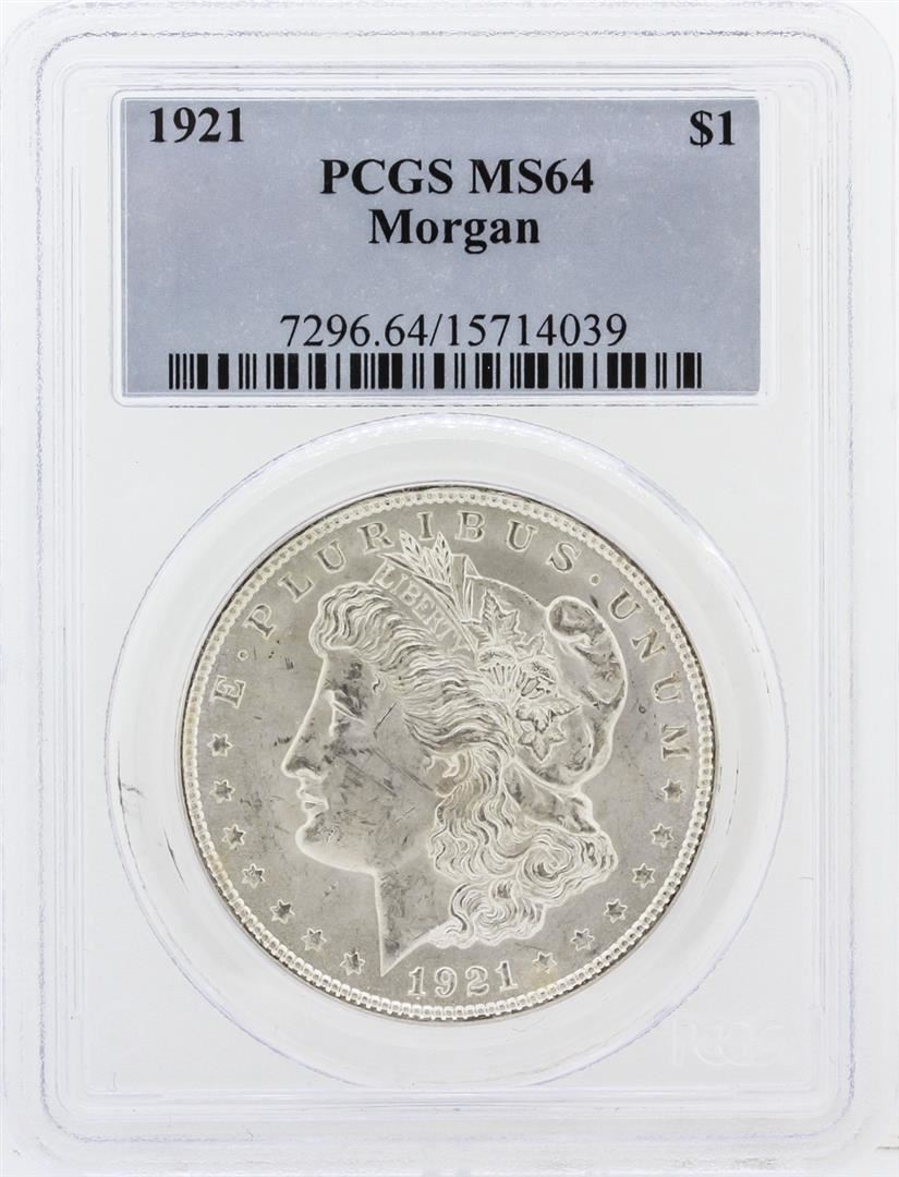 One 1921 PCGS MS64 Morgan Silver Dollar. PCGS Certified.