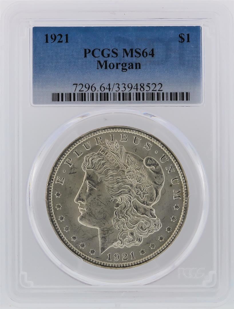One 1921 PCGS MS64 Morgan Silver Dollar. PCGS Certified.