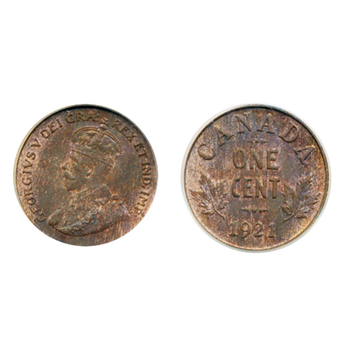 1921. PCGS graded Mint State-64. Red-Brown. 10% red luster remains.