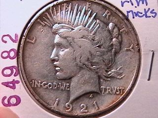 1921 PEACE SILVER DOLLAR F-12