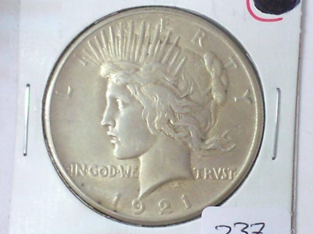 1921 PEACE SILVER DOLLAR (KEY DATE) (AU)