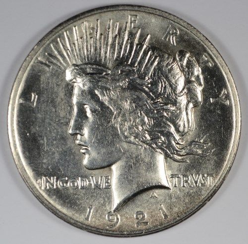 1921 PEACE SILVER DOLLAR, MS-64+, BLAST WHITE AND NICE
