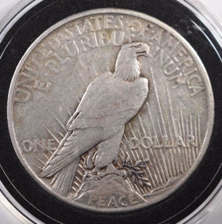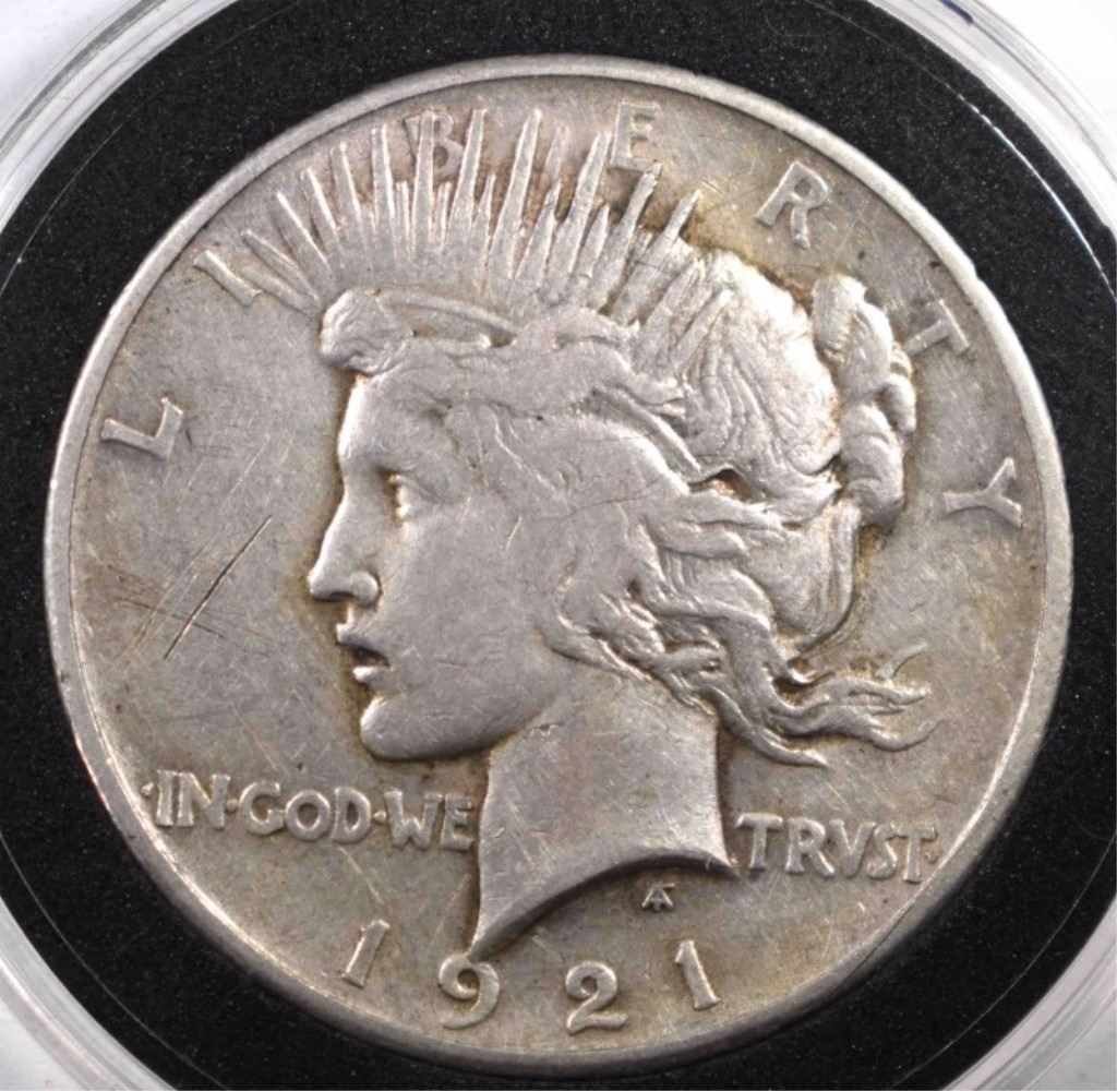 1921 PEACE SILVER DOLLAR, VF/XF -KEY COIN ESTIMATE $125 - $150.