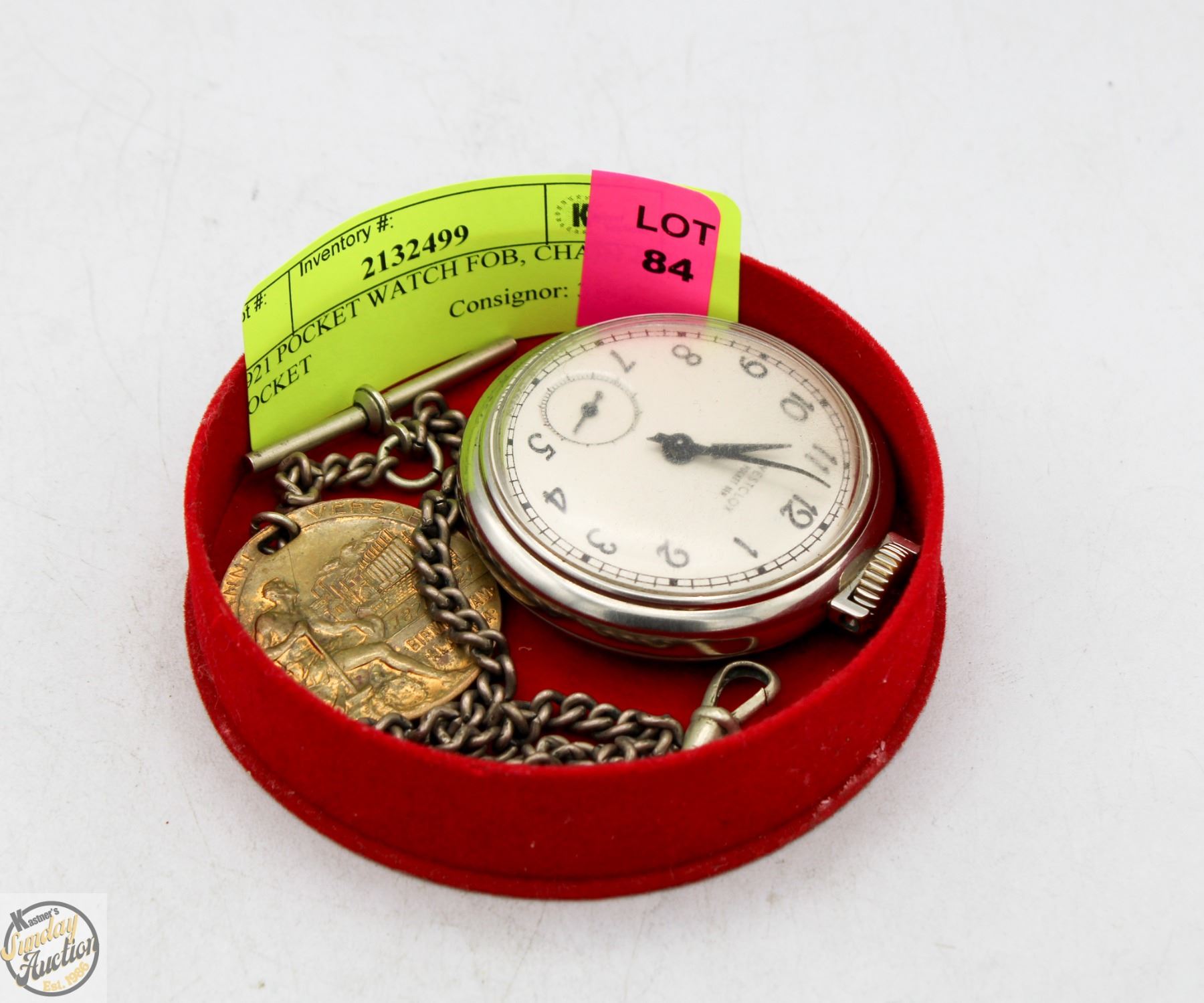 1921 POCKET WATCH FOB, CHAIN & POCKET
