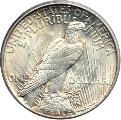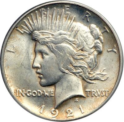 1921 Peace Dollar. PCGS graded MS-61. Housed in an Old Green Holder. The high relief of this design is what draws attention from collectors and non collectors alike (PCGS # 7356) .