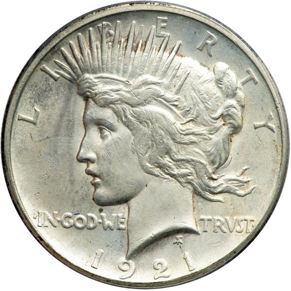 1921 Peace Dollar. PCGS graded Genuine. Our grade is AU with signs of old cleaning (PCGS # 7356) .