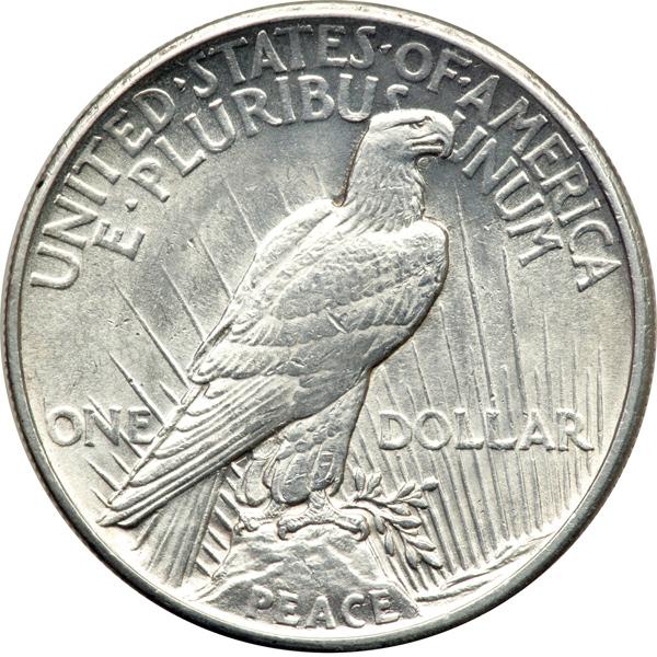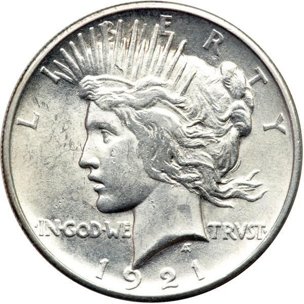 1921 Peace Dollar. Altered Surfaces. Our grade is AU (PCGS # 7356) .