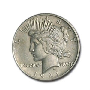 1921 Peace Dollar - Almost Uncirculated - High Relief **|**|** Year: 1921 ; Mint Mark: Almost Uncirculated ; Grade: P - Philadelphia ; Denomination: 1 ; MSRP: $300