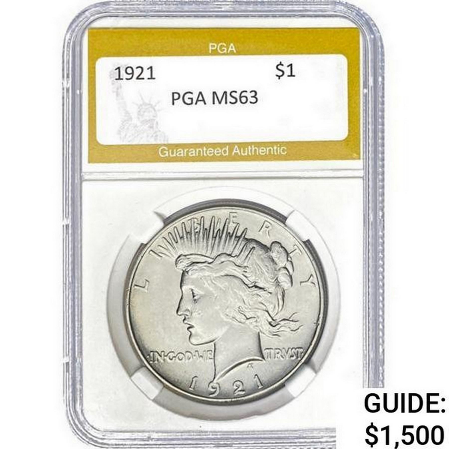 1921 Peace Dollar PGA MS63