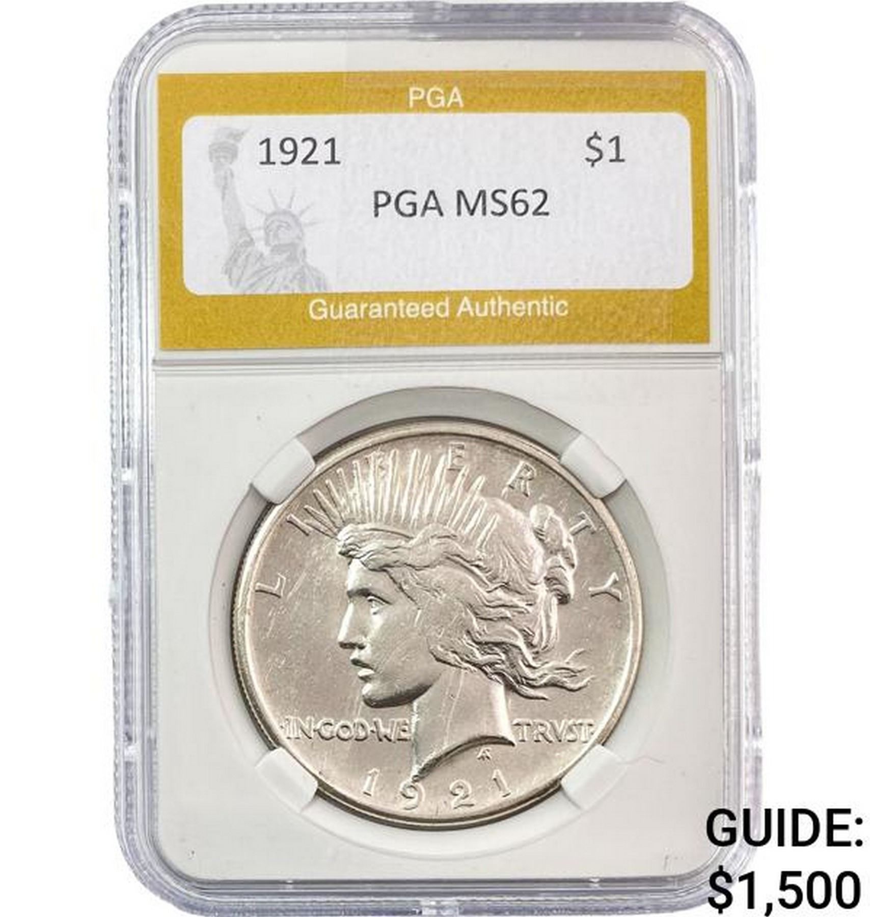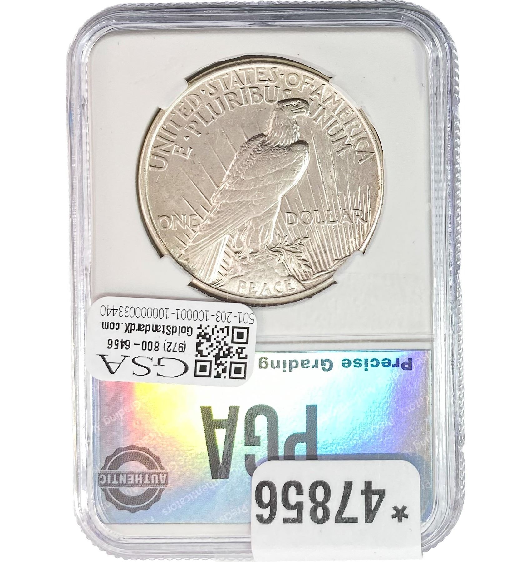 COINS AND CURRENCY LISTED IN GSA’S CATALOG AS GRADED AND ENCAPSULATED BY PCGS, NGC, ANACS, ICG, PCGS CURRENCY, PMG, PCGS BANKNOTE GRADING, CMC OR ANY OTHER THIRD-PARTY GRADING SERVICE ARE LIKEWISE SOLD “AS-IS” EXCEPT AS EXPRESSLY SET FORTH HEREIN. ALL THIRD-PARTY GRADING SERVICE GUARANTEES, INCLUDING AUTHENTICITY, ARE THE SOLE RESPONSIBILITY OF THE THIRD-PARTY GRADING SERVICE AND NOT WARRANTIES OR GUARANTEES OF GSA. BIDDERS SHOULD CONTACT THESE THIRD-PARTY GRADING SERVICES DIRECTLY WITH RESPECT TO ANY CLAIMS OR QUESTIONS THEY MAY HAVE CONCERNING THEIR GUARANTEES AND WARRANTIES. BIDDERS ACKNOWLEDGE AND AGREE THAT AUCTIONEER IS NOT BOUND BY OR LIABLE FOR ANY OPINION OR CERTIFICATION BY ANY THIRD-PARTY GRADING SERVICE. REMOVAL OF A PRODUCT FROM ITS PROTECTIVE CASING OR HOLDER OR ALTERATION OF ANY COIN HOLDER WAIVES ALL RIGHTS CONCERNING THE PRODUCT CONTAINED THEREIN.