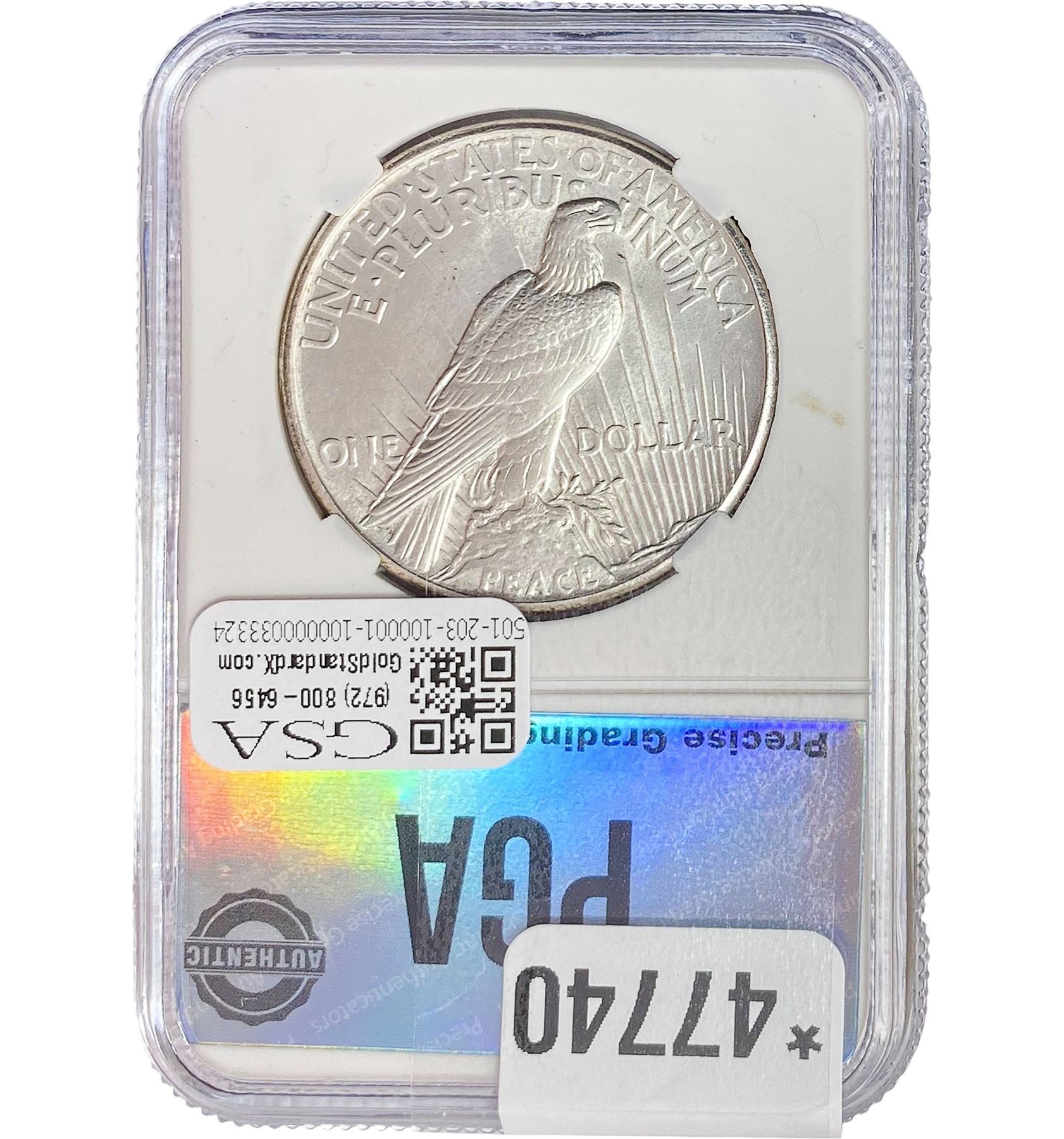 COINS AND CURRENCY LISTED IN GSA’S CATALOG AS GRADED AND ENCAPSULATED BY PCGS, NGC, ANACS, ICG, PCGS CURRENCY, PMG, PCGS BANKNOTE GRADING, CMC OR ANY OTHER THIRD-PARTY GRADING SERVICE ARE LIKEWISE SOLD “AS-IS” EXCEPT AS EXPRESSLY SET FORTH HEREIN. ALL THIRD-PARTY GRADING SERVICE GUARANTEES, INCLUDING AUTHENTICITY, ARE THE SOLE RESPONSIBILITY OF THE THIRD-PARTY GRADING SERVICE AND NOT WARRANTIES OR GUARANTEES OF GSA. BIDDERS SHOULD CONTACT THESE THIRD-PARTY GRADING SERVICES DIRECTLY WITH RESPECT TO ANY CLAIMS OR QUESTIONS THEY MAY HAVE CONCERNING THEIR GUARANTEES AND WARRANTIES. BIDDERS ACKNOWLEDGE AND AGREE THAT AUCTIONEER IS NOT BOUND BY OR LIABLE FOR ANY OPINION OR CERTIFICATION BY ANY THIRD-PARTY GRADING SERVICE. REMOVAL OF A PRODUCT FROM ITS PROTECTIVE CASING OR HOLDER OR ALTERATION OF ANY COIN HOLDER WAIVES ALL RIGHTS CONCERNING THE PRODUCT CONTAINED THEREIN.